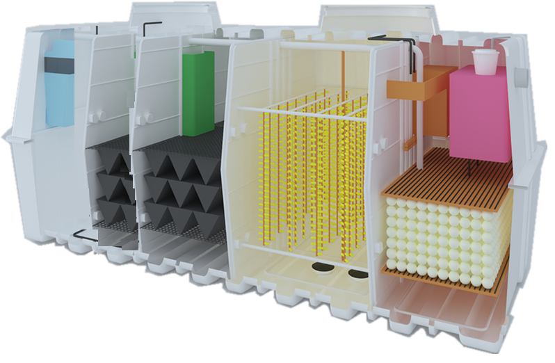 若前端不安裝化糞池,可將廚房、廁所、洗漱洗浴等生活污水直接引入設備處理即可,處理能力減半。