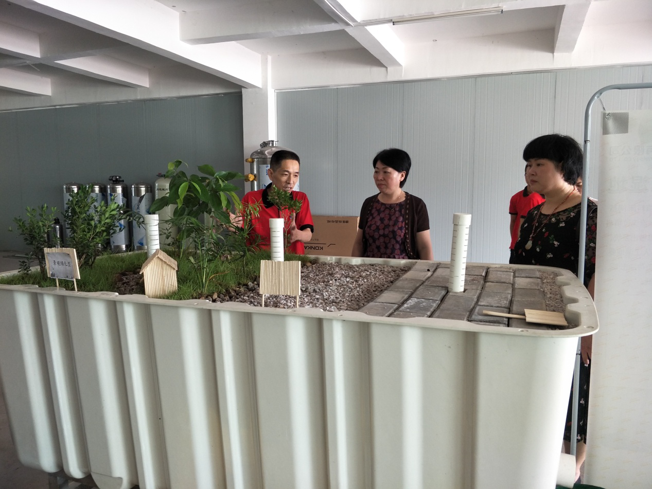 公司總經(jīng)理向羅部長一行介紹新一代呼吸型人工濕地